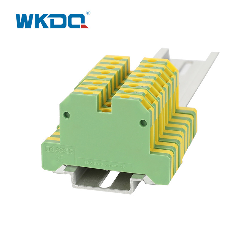 Die Gehäuse der Erdungsklemmenblöcke sind aus einem Material in den international anerkannten Farben Grün und Gelb geformt, die zur Kennzeichnung einer Erdungsverbindung verwendet werden.