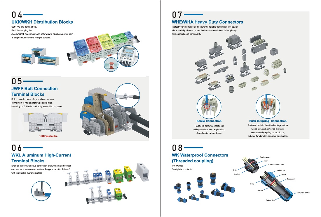 Auf dieser Ausstellung wird WKDQ acht Serien von Klemmenblockprodukten präsentieren, nämlich JUK, JUT, JPT, JPTV, JST, JPTFIX, JPTIO und UKK. Mit hoher Zuverlässigkeit, ausgezeichneter Umweltbeständigkeit und flexibler Anpassungsfähigkeit können diese Produkte in verschiedenen Szenarien wie industrieller Steuerung, intelligenten Geräten und neuer Energie eingesetzt werden. Sie bieten globalen Kunden durchgängige, integrierte elektrische Verbindungslösungen – von der Forschung und Entwicklung über das Design bis hin zur Produktion und Implementierung – und helfen ihnen so, die Produktionseffizienz und die Wettbewerbsfähigkeit der Produkte zu steigern.